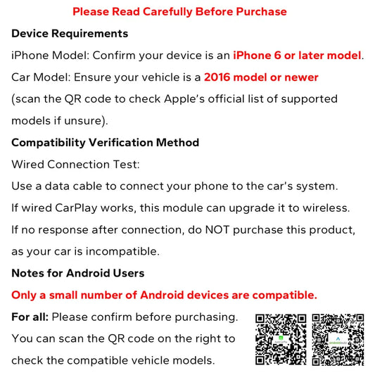 Adattatore CarPlay wireless, adatto solo al 98% delle auto con CarPlay dal 2016 in poi, piccolo adattatore CarPlay wireless USB (applicabile ad Apple CarPlay), passa da cablato a wireless