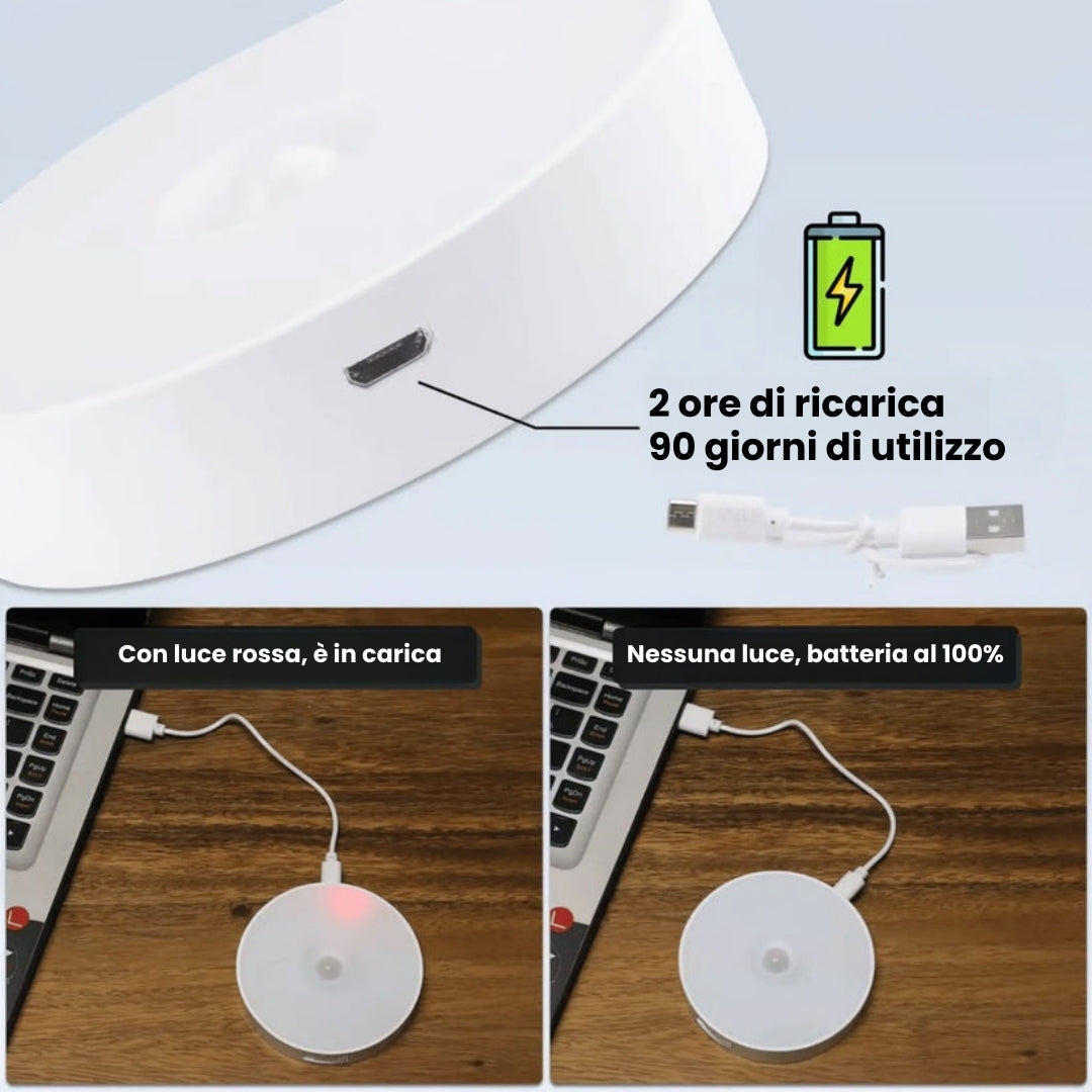 (Confezione da 2) Faretto LED ricaricabile con sensore di movimento