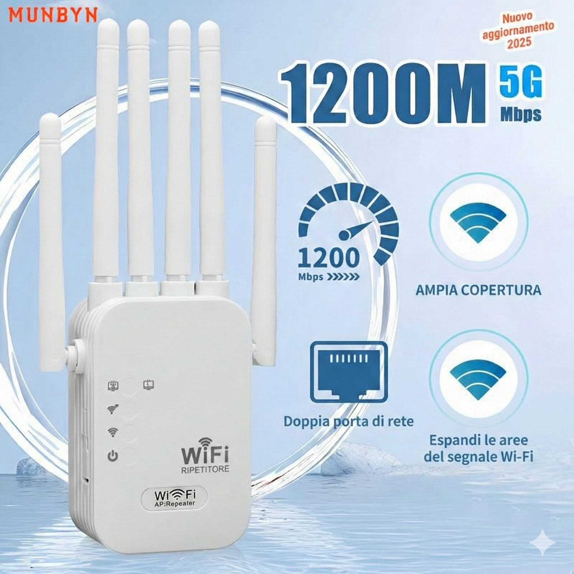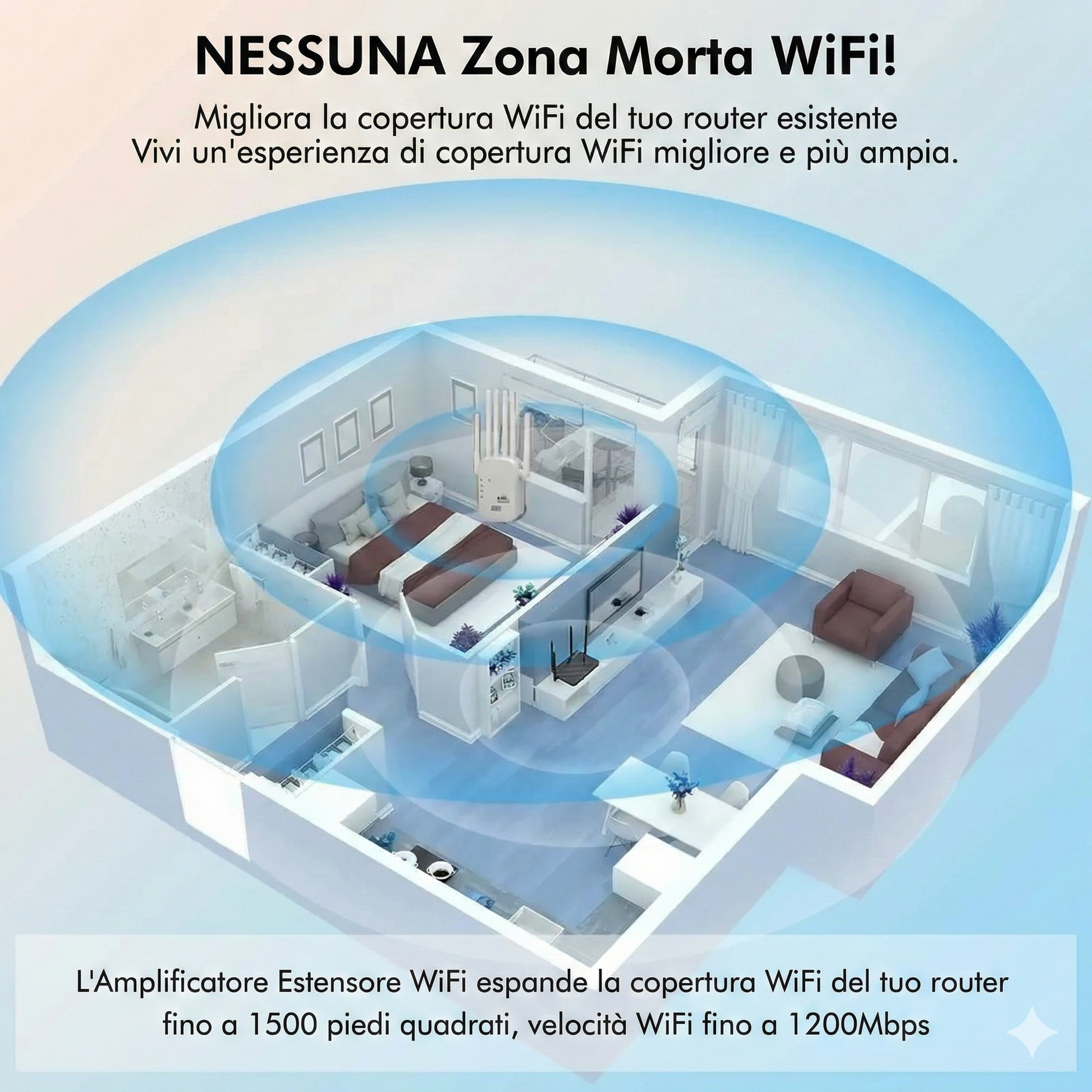 Elimina le zone morte con 4 potenti antenne. Questo extender offre una copertura WiFi forte e stabile in tutta la casa o l'ufficio. Copre fino a 940 m², garantendo la connettività per 50 dispositivi. Perfetto per le case di grandi dimensioni, include una porta Ethernet per un'integrazione perfetta.