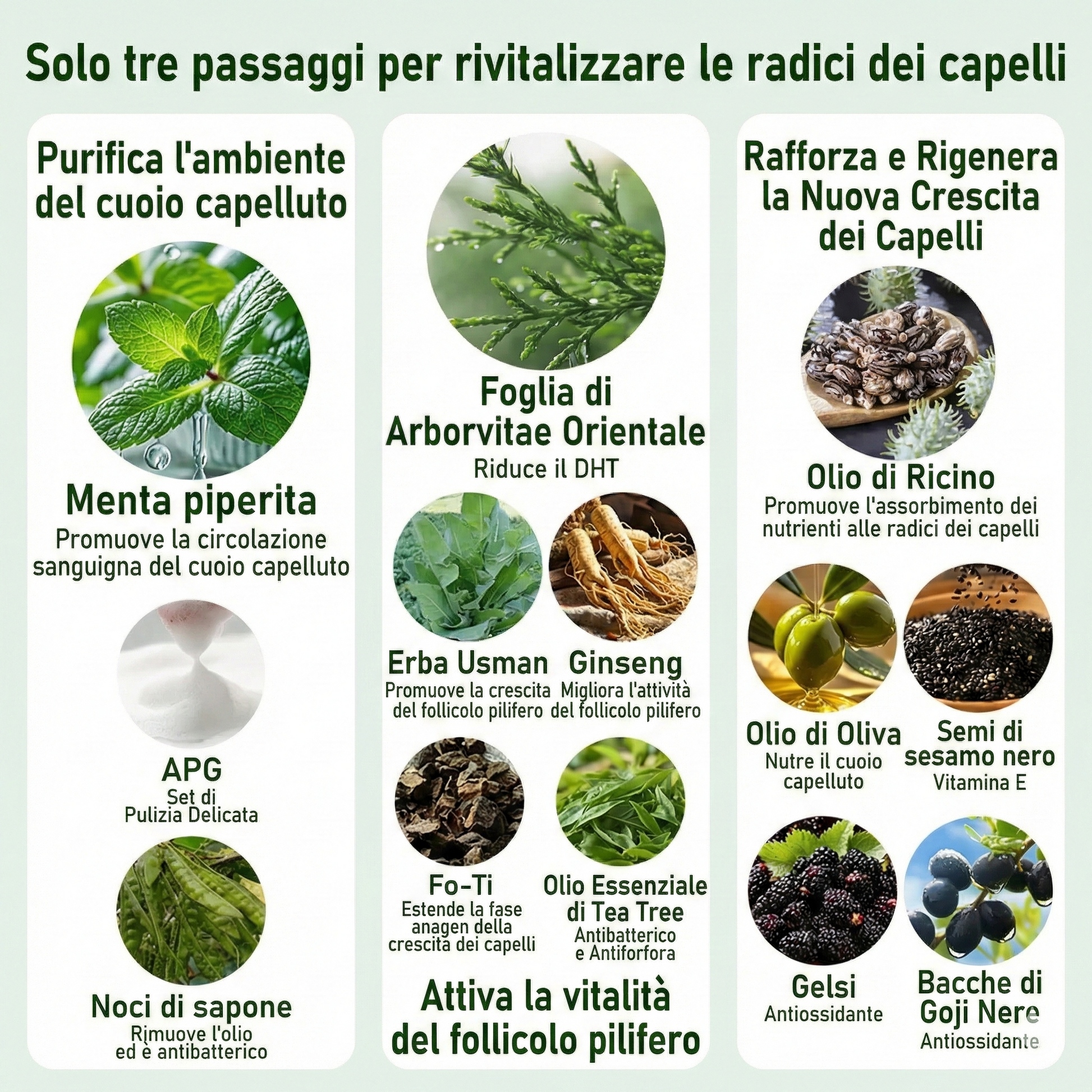 · Ingredienti a base di erbe: contiene Polygonum, Ginseng e Tea Tree.